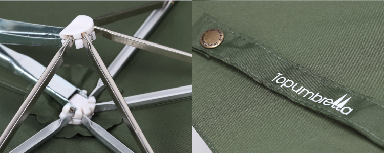 | 雙傘麵結構詳解 | 耐用銅製傘扣和加長傘帶 |