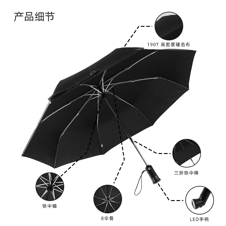 傘骨由八根優質鋁傘骨組成,強風吹不動
