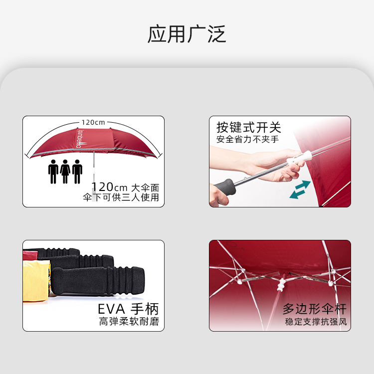 傘骨由八根優質玻璃纖維傘骨組成,超輕且堅固